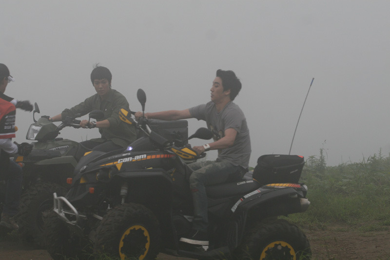 Aww! Looks like GD’s enjoying his pink scarf. ROFL. and look at baby, he’s hella scared. hihi ^^