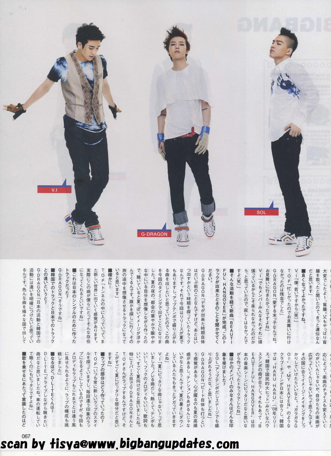 GD: I want to show the different styles of music in Korea and Japan. I want to carry out our activities in different countries with different musical styles and then, after we perform, we can see how good the response is. Afterwards, the we can alter the style of our songs according to the response, isn’t it good? In this way, our range of music styles can be widened in this way too. The club tone style of songs ‘GARA GARA GO!’ , ‘MY HEAVEN’ are suitable to be released in Japan while the house temp songs like ‘Haru Haru’ (released in 2008 and was a great hit in Korea) are more suitable in Korea. Since ‘Beautiful Hangover’ is a song carries the style which is similar to the Japanese pop songs; therefore, I produced them specially for Japanese fans.