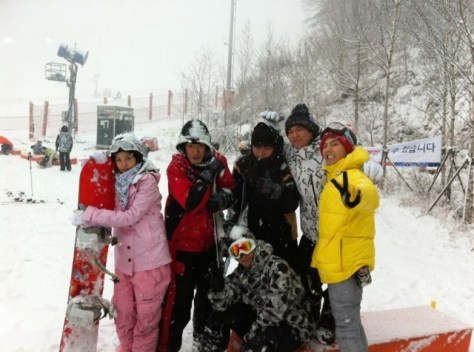 On December 9th, one of Big Bang’s managers uploaded a picture onto Twitter with the caption, ‘We went to create beautiful memories‘. You can definitely spot the confident G-Dragon poses with a V-sign, and a lovely Dara cuddling her snowboard amongst other YGE members.