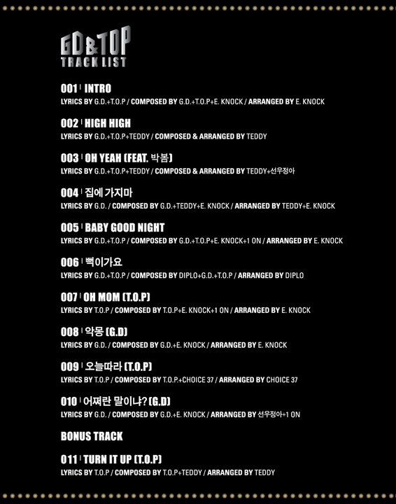 NEWS [NEWS] UPDATED “High High” Album Track List December 17, 2010 yongsvvip Leave a comment Source: Facebook.com/BIGBANG Share this: Click to share on X (Opens in new window) X Click to share on Facebook (Opens in new window) Facebook Click to share on Tumblr (Opens in new window) Tumblr Click to share on Pinterest (Opens in new window) Pinterest Like Loading... Related