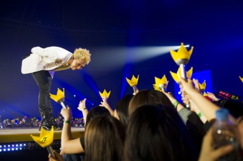The stage was then rocked by Taeyang with WHERE YOU AT and I’LL BE THERE. As soon as we heard the intro, VIPs started shouting, “DONG YOUNGBAE, DONG YOUNGBAE”, repeatedly just like in last year’s CD. But this time, I joined them and felt so proud about it! YB’s dance moves are beyond words. He’s really the dance king (I only watch on Youtube before) who also has supreme vocals! While YB is on the stage, the stadium further heated up. VIPs swung their crown sticks back and forth following his moves. How I wish I had one too 😦