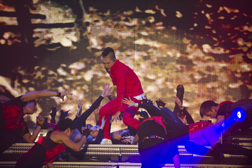 Wearing a black suit and sporting a new hairstyle, Dae not only showed us his good looks but also presented us with a warm new song, BABY DON’T CRY. “Oh baby don’t cry. Don’t forget the promise we made…” A song only Dae, the smiling angel, can sing. Dae was always showing his Doraemon-like smile but unlike maknae and Taeyang, Dae didn’t dance at all because his song wasn’t exactly for dancing 😛
