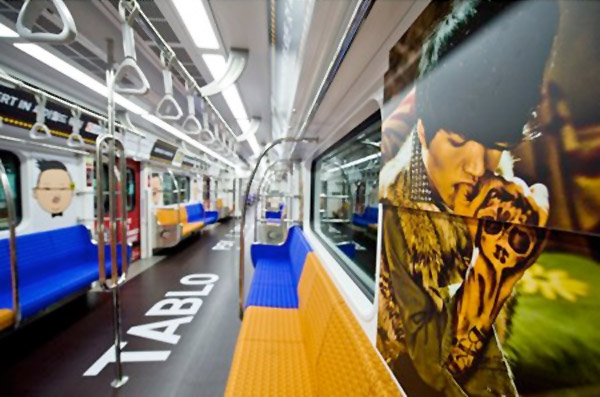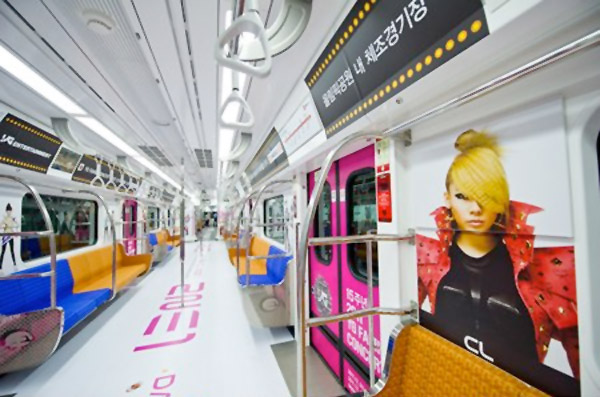 This is part of the promotional strategies of the YG Family Concert to hold on December 3 and 4 at the Gymnastics Arena in Olympic Park to celebrate the 15th anniversary of the Korea’s leading entertainment agency. A compartment of the train is designated for Big Bang and 2NE1, largely covered with the members’ faces. Through the LCD monitors, we can see their concert videos, adding more excitement to the atmosphere.