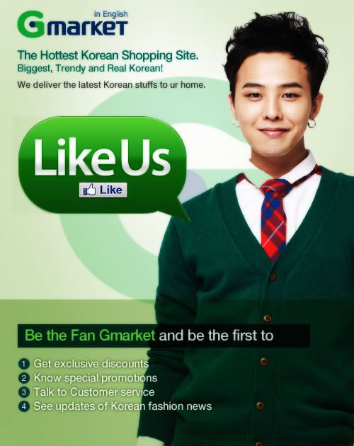 Advertisements, Endorsements [PHOTOS][AD] G-Dragon for G-Market’s Official Facebook Page January 4, 2012 jomi25 Leave a comment cr: DCGD Share this: Share on X (Opens in new window) X Share on Facebook (Opens in new window) Facebook Share on Tumblr (Opens in new window) Tumblr Share on Pinterest (Opens in new window) Pinterest Like Loading... Related