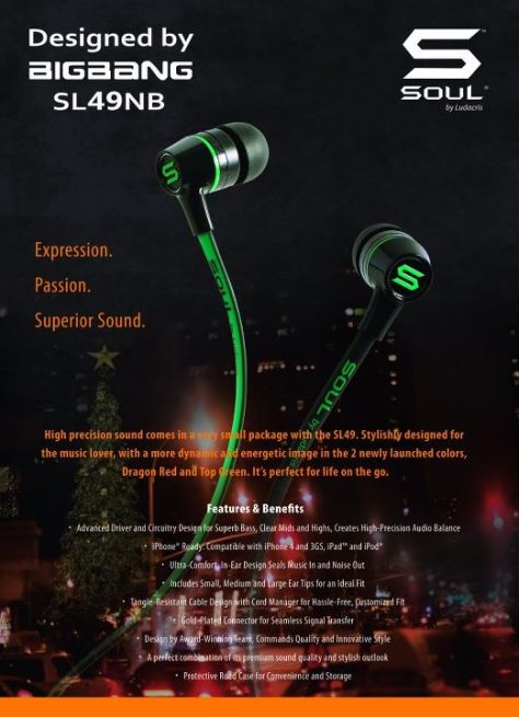 Advertisements, Photos [PHOTOS][AD] SOUL by Ludacris In-Ear Headphones Designed by BIG BANG Series January 17, 2012 xandeelicious Leave a comment DRAGON RED: TOP GREEN: Source & Credits: @lollipopNIKO, Soul by Ludacris JAPAN Facebook Page, BigbangUpdates ❤ Share this: Click to share on X (Opens in new window) X Click to share on Facebook (Opens in new window) Facebook Click to share on Tumblr (Opens in new window) Tumblr Click to share on Pinterest (Opens in new window) Pinterest Like Loading... Related