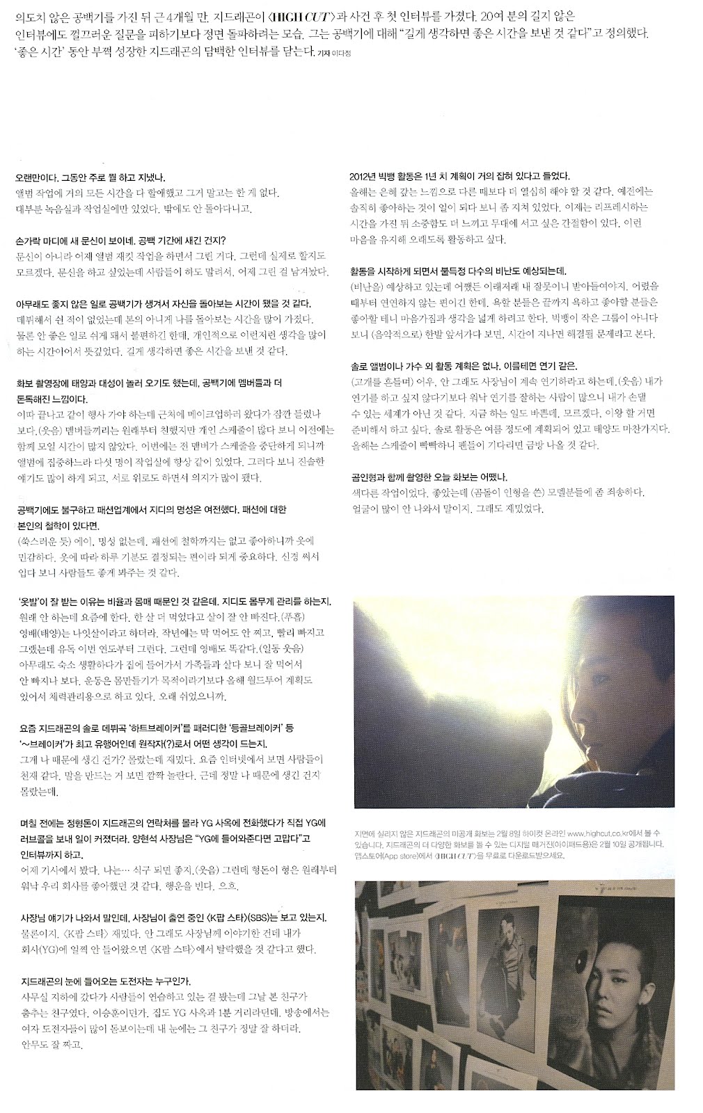 [PHOTO/TRANSLATION] More G-Dragon for High Cut (Volume 70) and Translated Parts