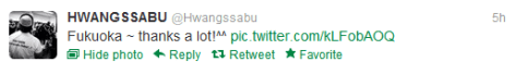 Japan Activities, Photos, Twitter [PHOTOS][Twitter] Hwangssabu’s Twitter Update on Alive Tour 2012 in Fukuoka 120624 June 25, 2012 ragnarox13 Leave a comment Source: @Hwangssabu Share this: Click to share on X (Opens in new window) X Click to share on Facebook (Opens in new window) Facebook Click to share on Tumblr (Opens in new window) Tumblr Click to share on Pinterest (Opens in new window) Pinterest Like Loading... Related
