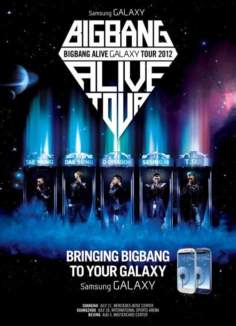 Samsung also didn’t hold back their praises for Big Bang as they stated, “We thought this was a good opportunity for us to see the spread of Hallyu and meet with the youth market all over the world with Korea’s representative musician, Big Bang, through the ‘Big Bang Alive Galaxy Tour 2012′. This is not a typical one-time sponsorship, we will be sponsoring the world tour long term and establish a new culture code that helps enrich the lives of customers through the meeting of Big Bang and Samsung’s Galaxy.”
