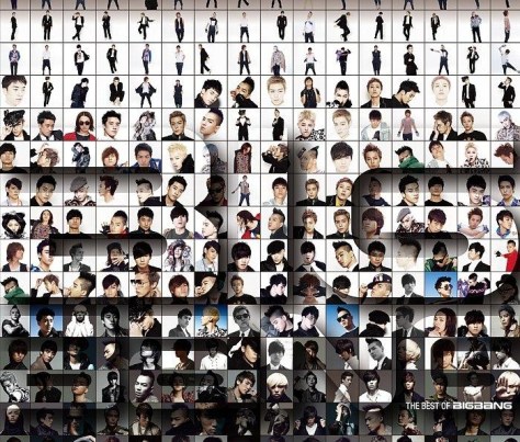 The limited edition The Best of Big Bang album jacket features an array of individual pictures of the Big Bang members to form a collage that highlights the group’s name Big Bang