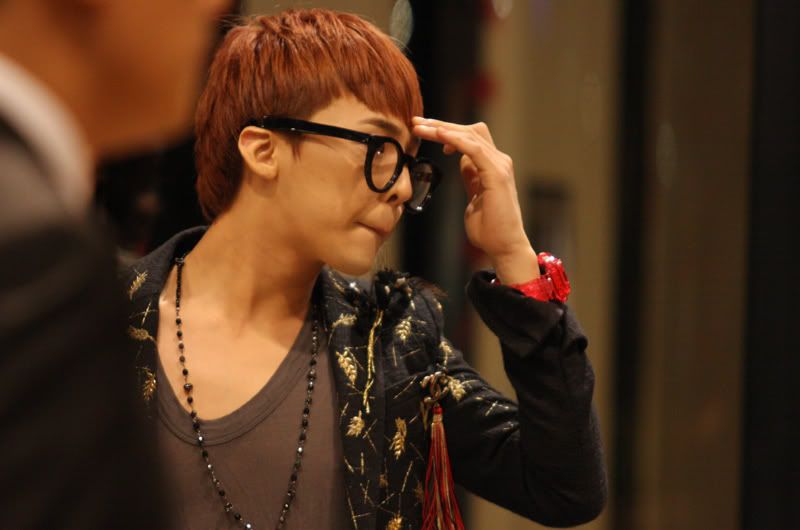 For the event, G-Dragon wore a jacket with a golden leaf pattern and a Chanel breastpin (2010 Shanghai Limited Edition). He also wore a a Takashi Murakami watch on his left wrist.