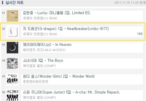 NEWS, ScreenCaps, status [INFO/PHOTO] G-Dragon’s first solo album HEARTBREAKER ranks Second on Hanteo Chart November 15, 2011 xandeelicious Leave a comment Continue reading [INFO/PHOTO] G-Dragon’s first solo album HEARTBREAKER ranks Second on Hanteo Chart → Share this: Click to share on X (Opens in new window) X Click to share on Facebook (Opens in new window) Facebook Click to share on Tumblr (Opens in new window) Tumblr Click to share on Pinterest (Opens in new window) Pinterest Like Loading...