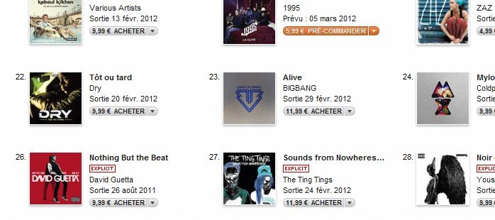 His “One of a Kind” MV previously reached #72 on the same chart as well, and is currently sitting at 91st place. Notably, YG Entertainment labelmate Psy is taking up 1st and 2nd place on the MV chart with “Gangnam Style” and HyunA‘s version, respectively. “Gangnam Style” is also still first on iTunes’ songs chart.