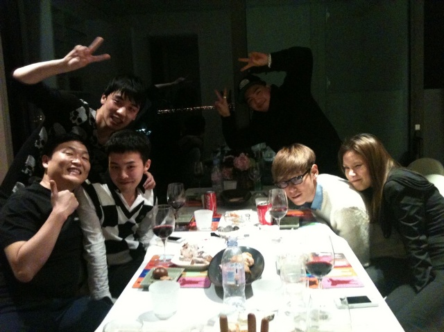 To celebrate the end of 2011, the YG Family members toasted their wineglasses at Psy’s year-end party.