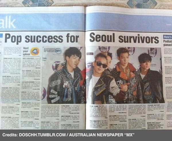 Aside from being mentioned in various news and music websites after winning at the MTV EMA, BIGBANG was also featured in different newspapers around the world: