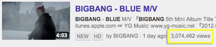 As posted from BIGBANG‘s Facebook page. It is such a milestone because BIGBANG is the FIRST KPOP Idol Boyband to achieve more than 100 million (Currently 100,054,434 views) views in their M/V in Youtube. Congrats to our boys! Good job VIPs! Spread the BIGBANG Love~